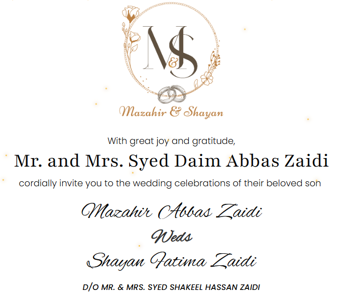 We look forward to welcoming you to these special celebrations. Your prayers and blessings are the greatest gift for this new chapter in Mazahir’s life. For any assistance, please feel free to contact us at